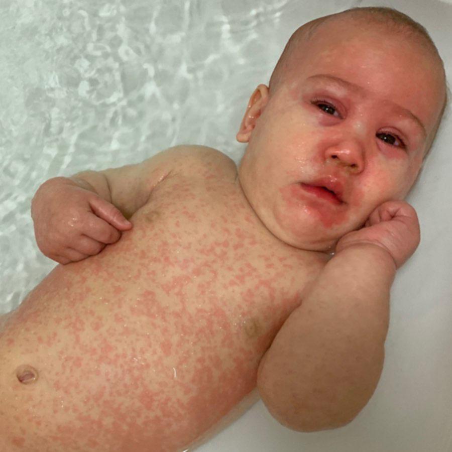 초기 증상 이후, 홍역의 가장 특징적인 증상 중 하나인 발진이 나타납니다.